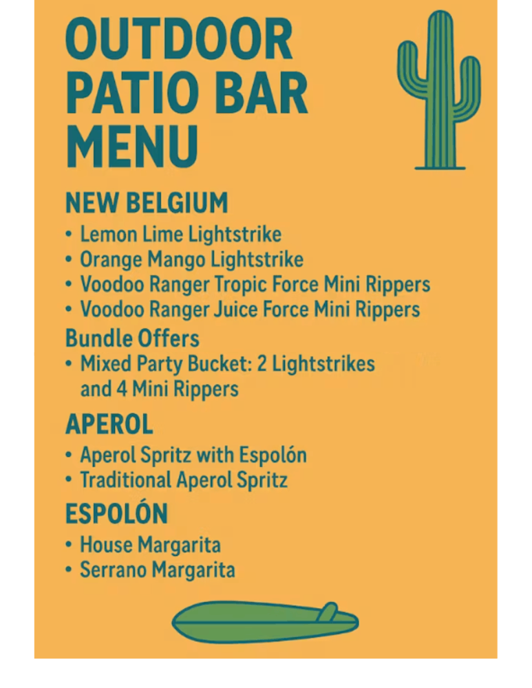 Whether you’re sipping an Aperol Spritz, grooving to live music, or kicking back with friends over tacos and cold beer — this is your new Saturday ritual.